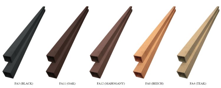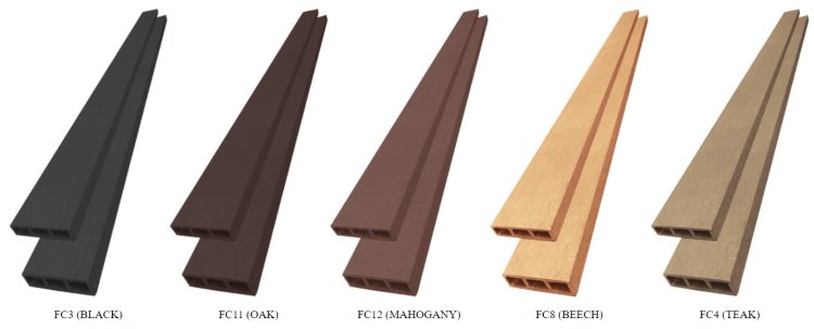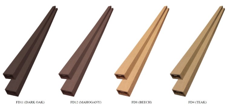 วัสดุไม้ WPC รุ่น ขนาด 30 x 51 mm. (1.2x2นิ้ว) มีทั้งหมด 4 เฉดสี ได้แก่ สีไม้โอ๊คเข้ม (DARK OAK) , สีไม้มะฮอกกานี (MAHOGANY) , สีไม้บีช (BEECH) , สีไม้สัก (TEAK)